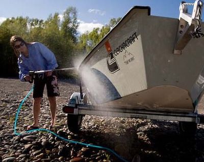 Use high-pressure water and/or water above 104° F (40° C) to clean trailers, boats and equipment. If you do not have access to 104° water, be sure to dry your boat after washing.